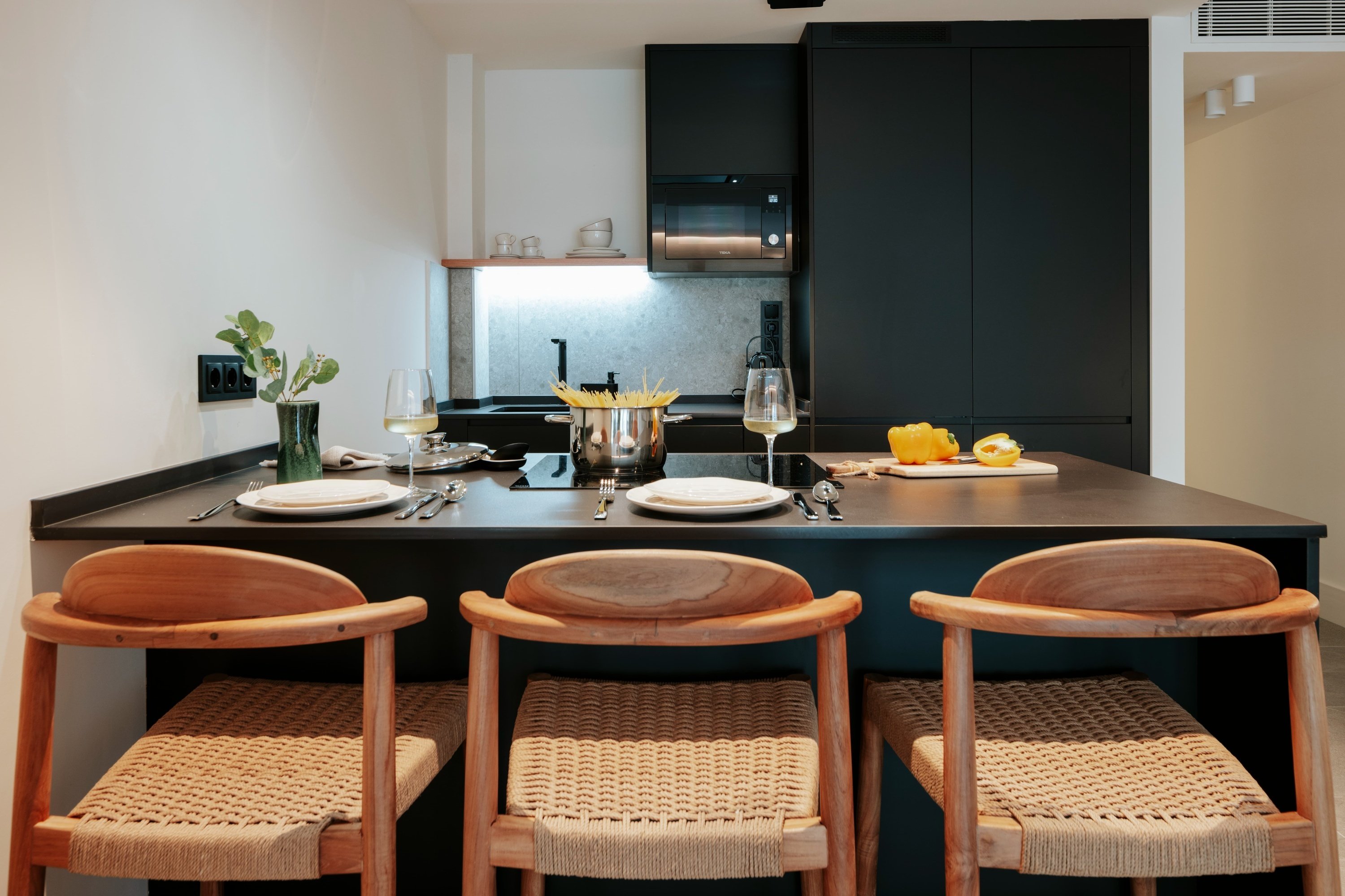 Completamente equipado, con ropa de cama y de baño, utensilios de cocina y vajilla, TV de pantalla plana, Wifi, aire acondicionado, caja fuerte. También pensado para los más pequeños de la casa con cuna, trona y gel infantil. (Sujeto a disponibilidad y bajo petición)